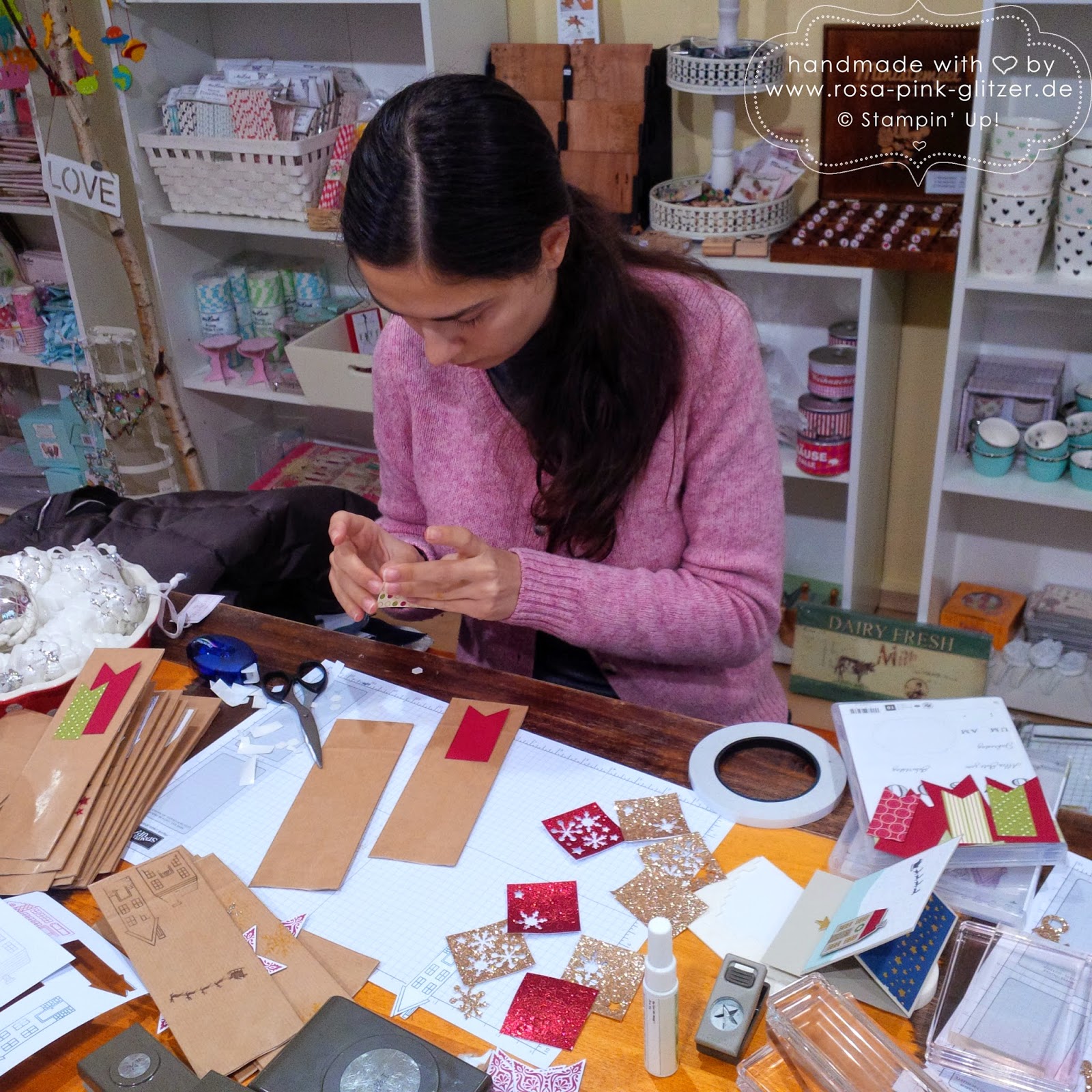 Heute zeig ich Euch endlich die Projekte, die wir beim Weihnachtsworkshop im wunderschönen Laden von Monica gebastelt haben. Ich hoffe, Ihr seid gespannt: