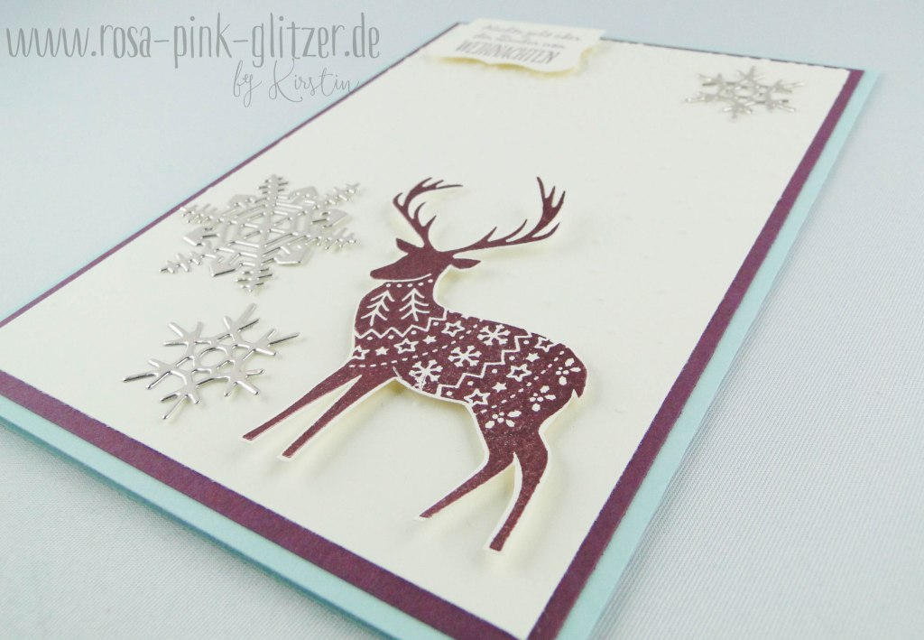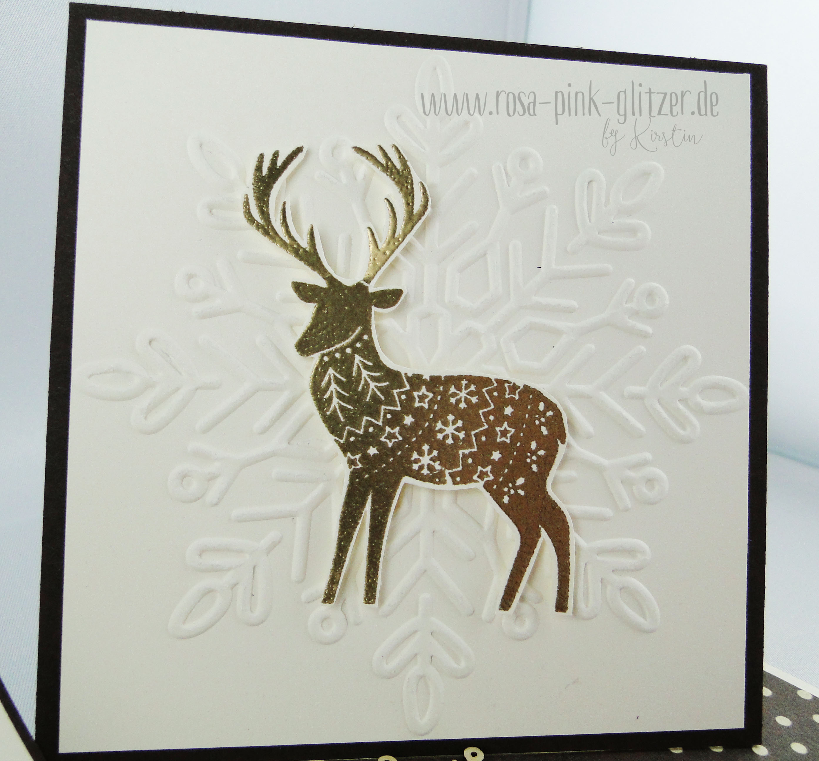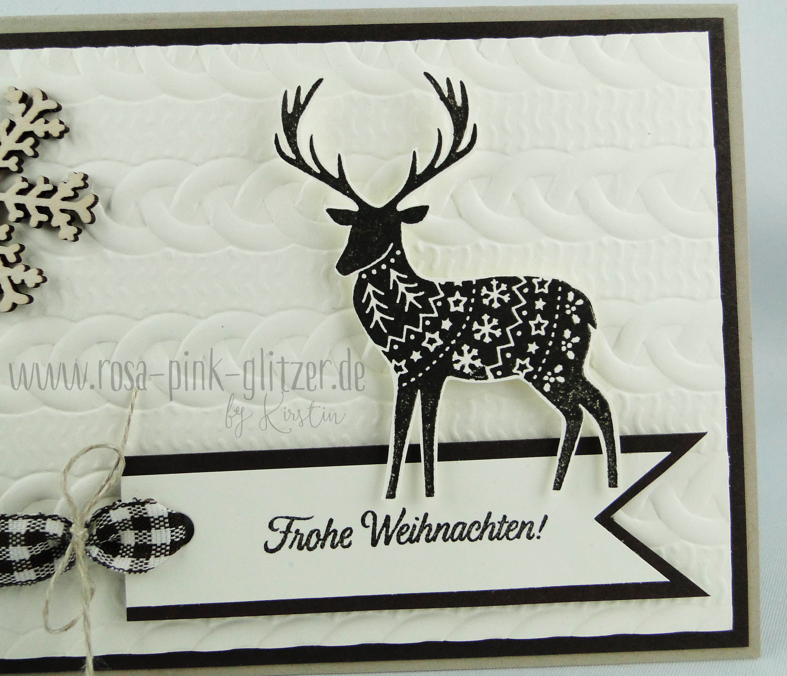 Ihr seht, der Hirsch aus dem Stempelset Freude im Advent lässt mich nicht los. Der ist aber auch einfach zu schön. Hier hab ich ihn in Schiefergrau gestempelt und ausgeschnitten.