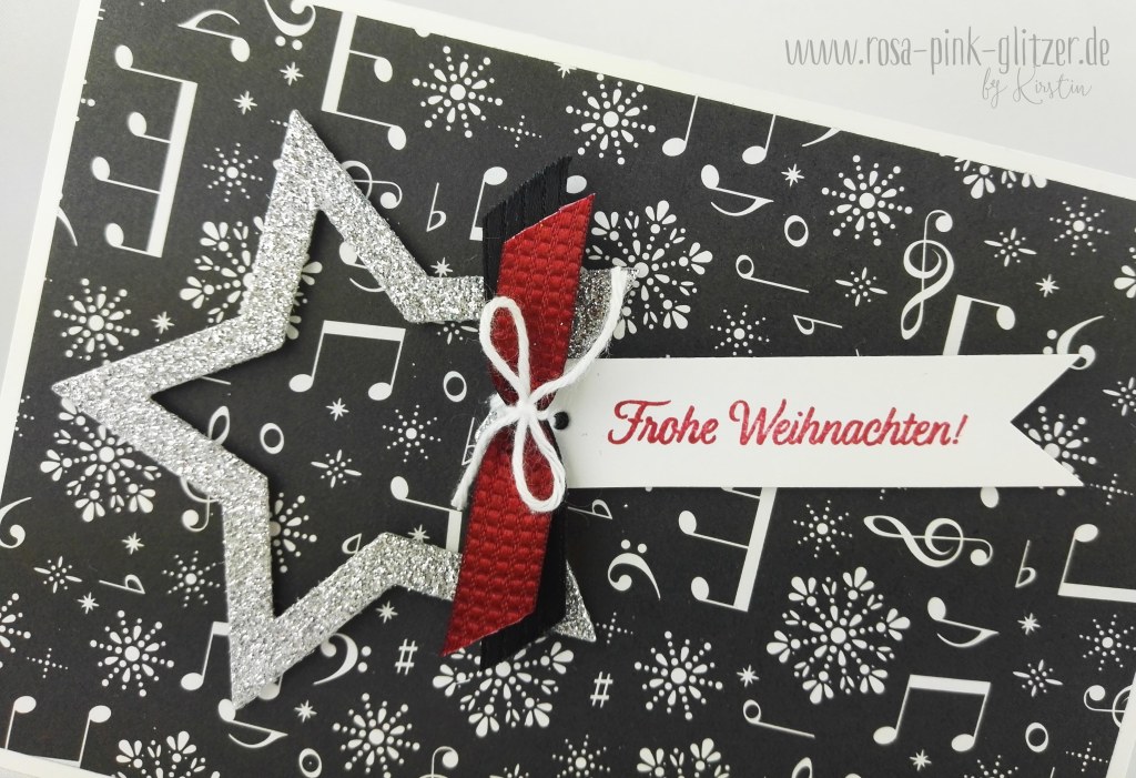 Dann noch ein netter Spruch und die Karte war im Grund fertig. Irgendwie fehlte aber noch was. Genau, Glitzer! Die schwarzen Glitzersteinchen hatte ich eh noch nie ausprobiert und so durften die noch auf die Karte, zusammen mit ein paar klassischen Strass-Steinchen. Tada, fertig war die Karte zu den schwierigen Farben.