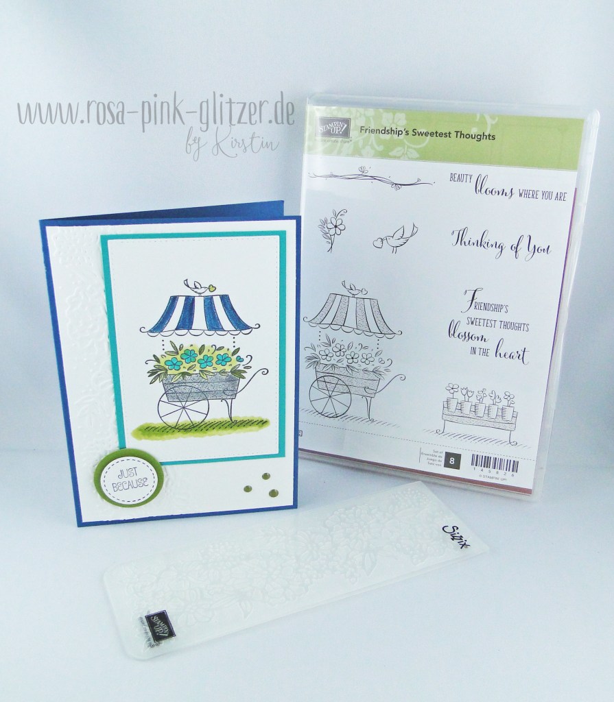 Ich musste natürlich gleich zu einem neuen Stempelset aus dem Stampin up Frühjahr-Sommer-Katalog greifen. Es heißt Friendship’s Sweetest Thoughts und ist mir gleich beim ersten Durchblättern aufgefallen: