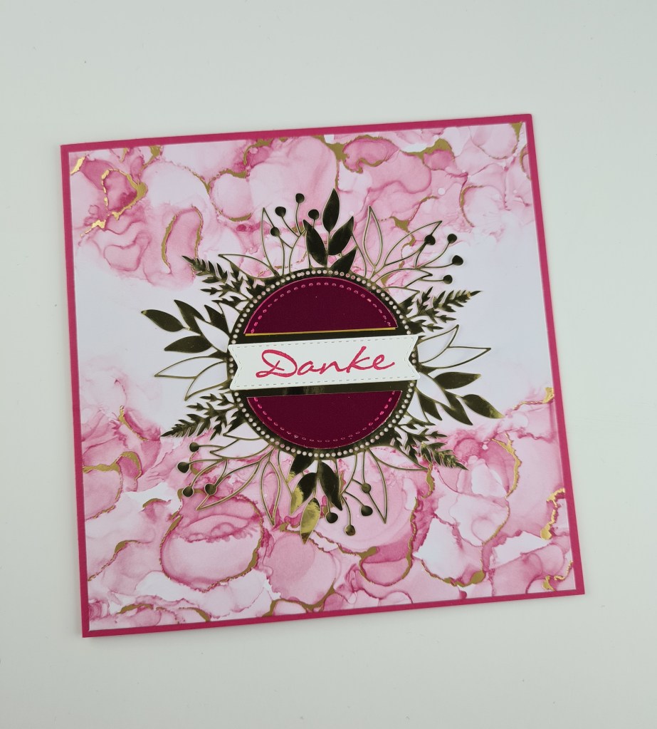 Die zweite Karte ist gedeckter. Ich hab mich dabei von den kleinen Pralinchen inspirieren lassen, die im Süßigkeitenglas stecken.