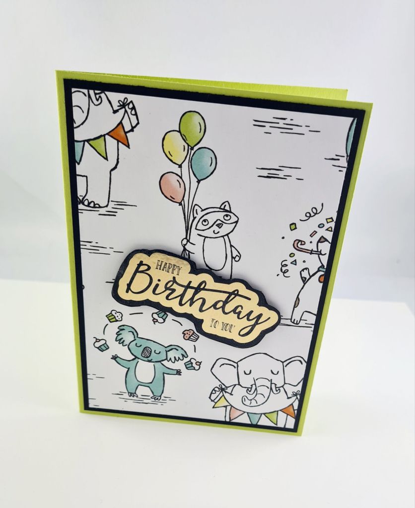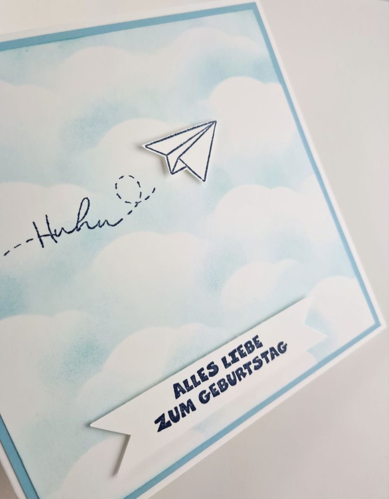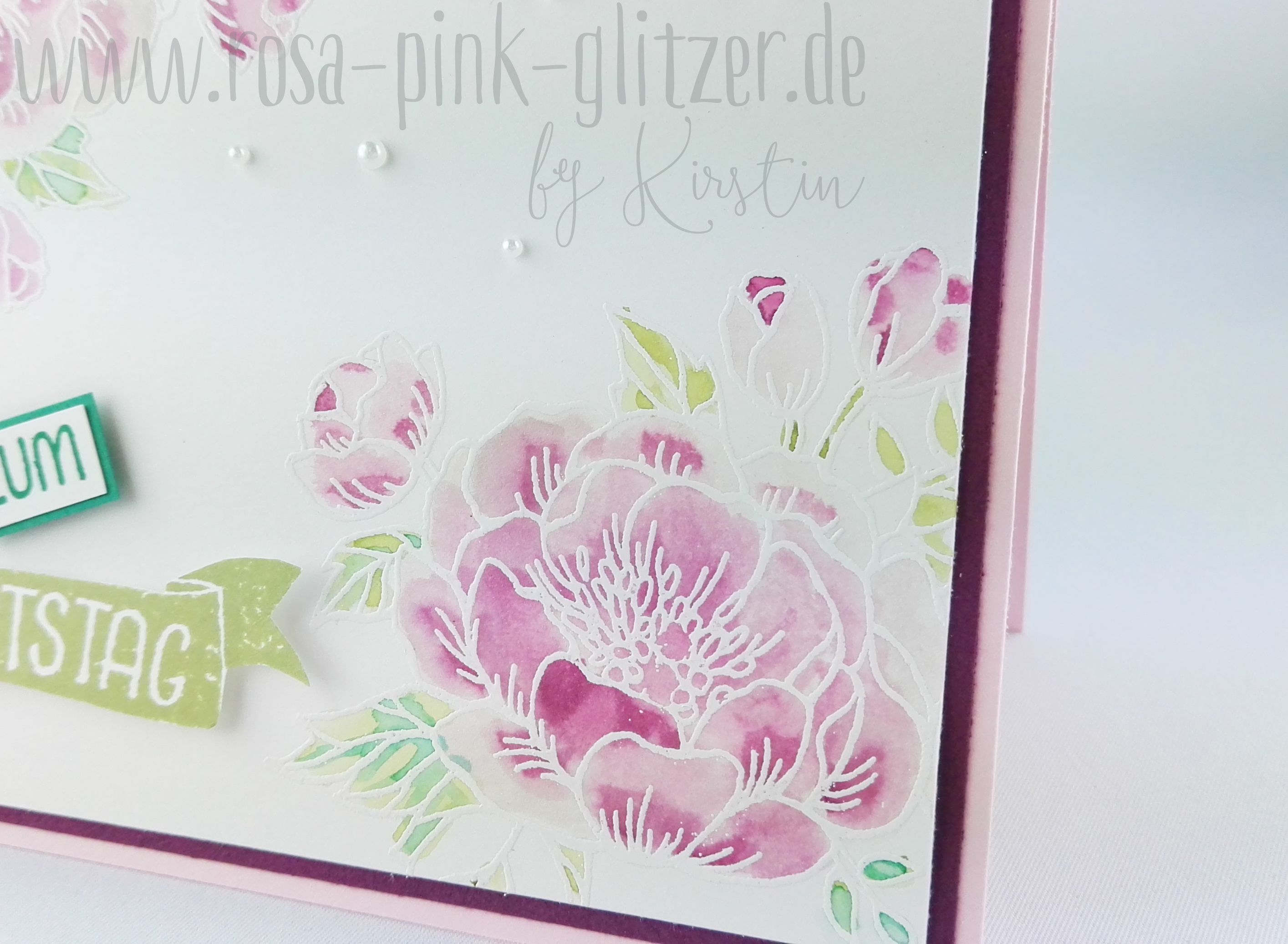 Nach dem trocknen noch auf ein Stück passend farbigen Cardstock kleben, Spruch drauf – fertig.