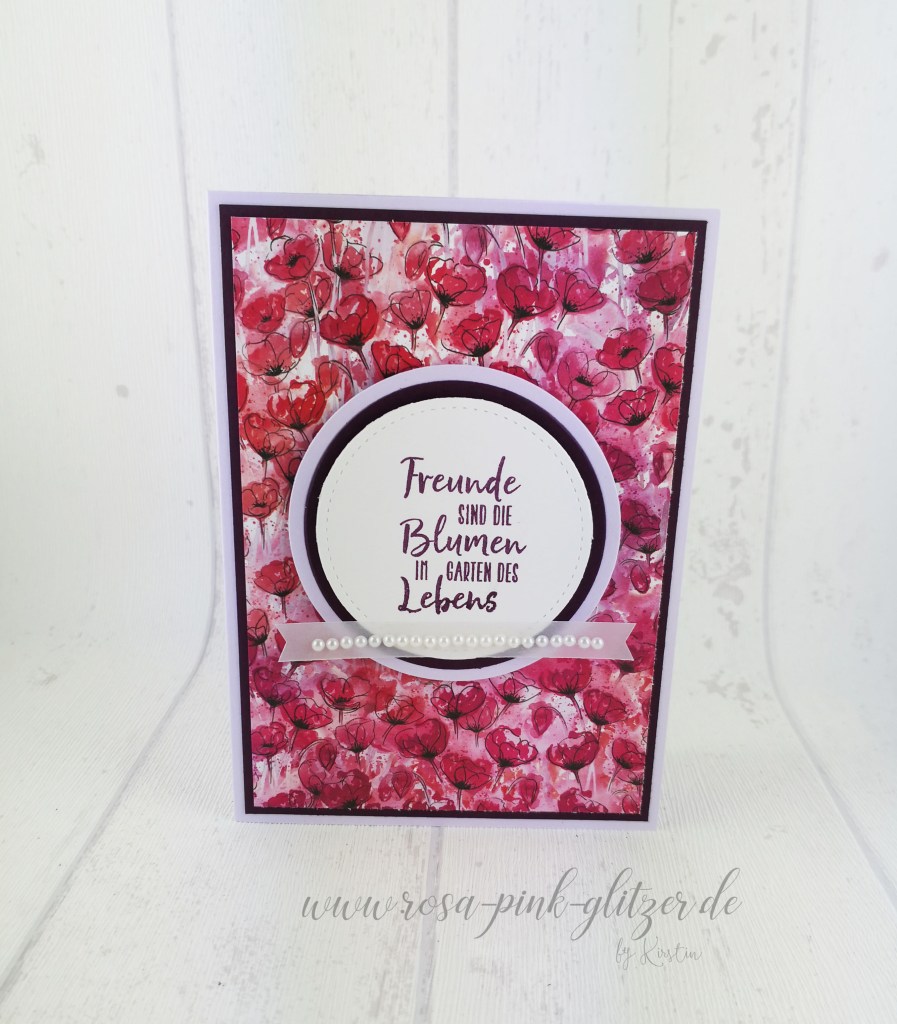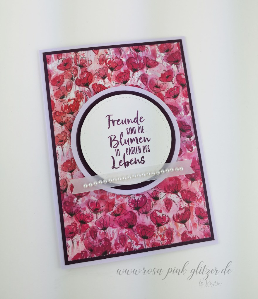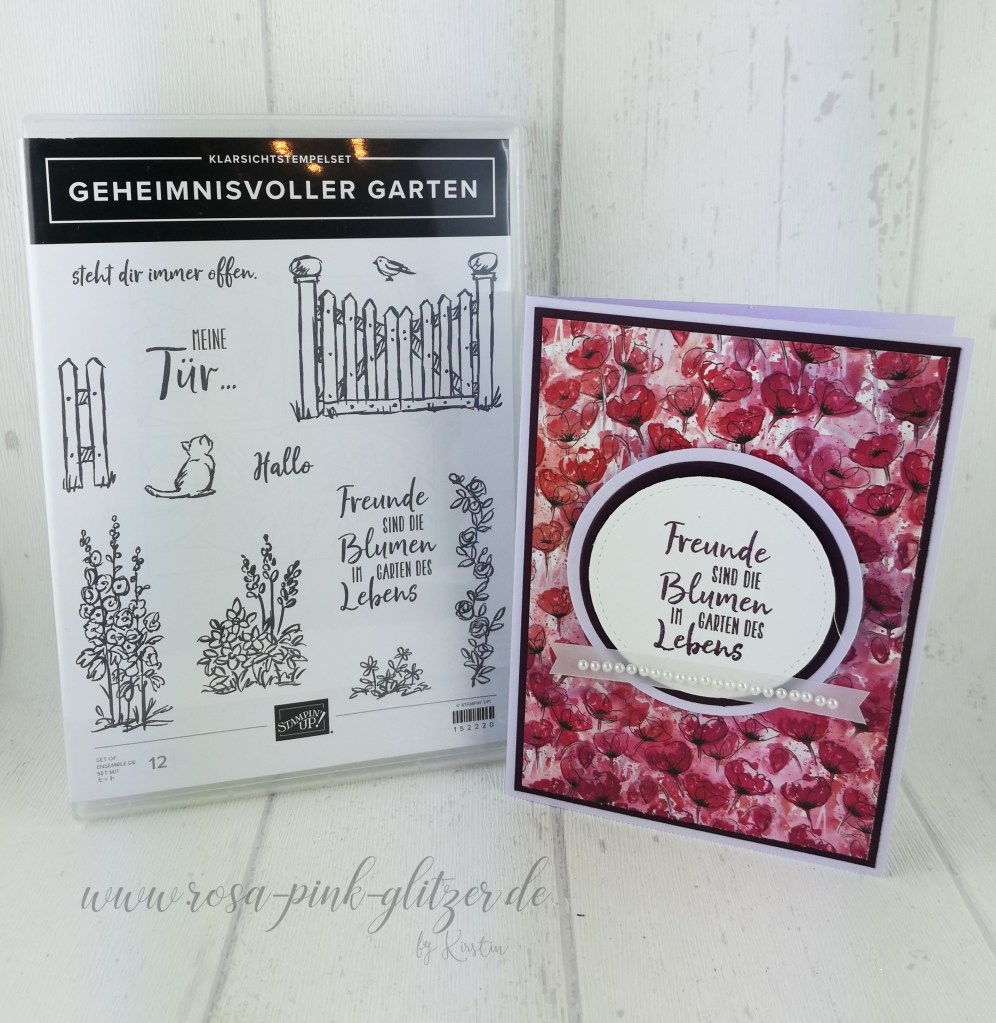 Der Spruch stammt aus deinem neuen Stempelset aus dem Minikatalog von Stampin up. „Geheimnisvoller Garten“ heißt es. Ursprünglich wollte ich es gar nicht. Aber dann waren da diese Karten, die es bei OnStage zu sehen gab und die ich nachbasteln wollte. Tja, lange Rede, kurzer Sinn – das Set gehört jetzt mir. Und der Spruch passt hervorragend zum Papier wie ich finde.