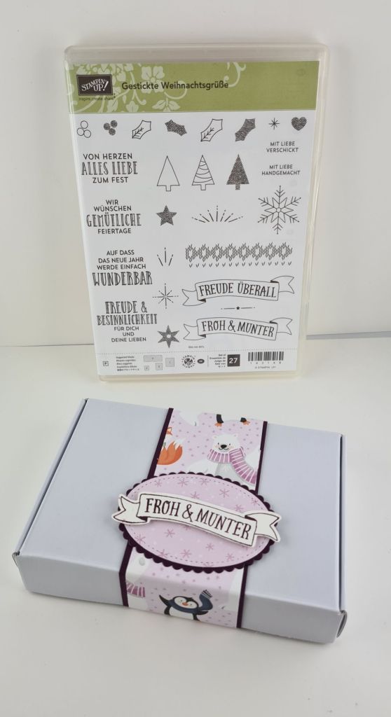 Der Wimpel stammt aus dem Set „Gestickte Weihnachtsgrüße“. Um das bin ich ja rumgeschlichen, seit ich den Katalog zum ersten Mal gesehen hab. Nun, jetzt wohnt es bei mir. 😀