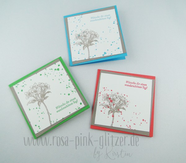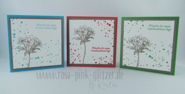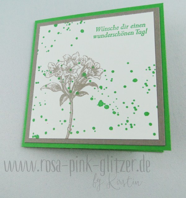 Die Rosen sind ebenfalls Teil des Segensfeste-Stempelset. Die „Flecken“ im Hintergrund schimmern übrigens so, weil ich sie in schwarz embosst habe. Ich finde, das verleiht dem ganzen ein wenig Glamour und passt super zum Trash-the-Dress-Thema.