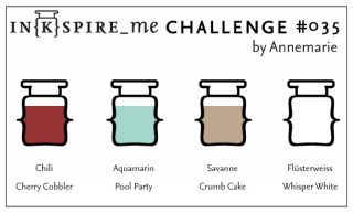 Vielleicht inspiriert Euch die Karte ja, bei der aktuellen Inkspire_me-Challenge mitzuspielen. Bis morgen abend habt Ihr noch Zeit. Das hier sind übrigens die Farben: