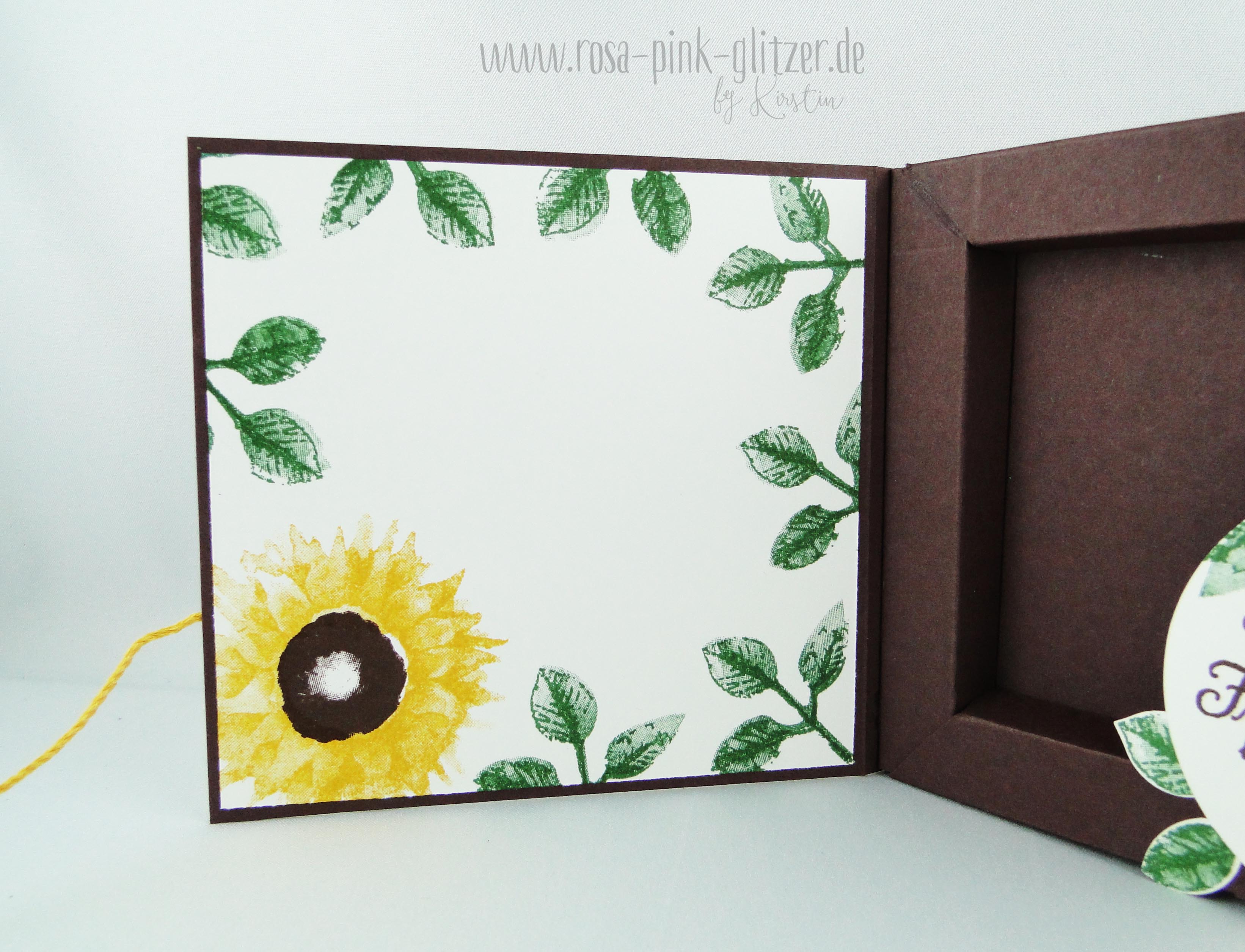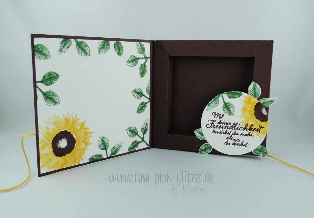 Wenn man die Karte aufklappt, kommt das „Geheimnis“ heraus: Eine Shadowbox, mit der man ein paar kleine Merci-Schokoladen oder ähnliches hübsch verpacken kann.