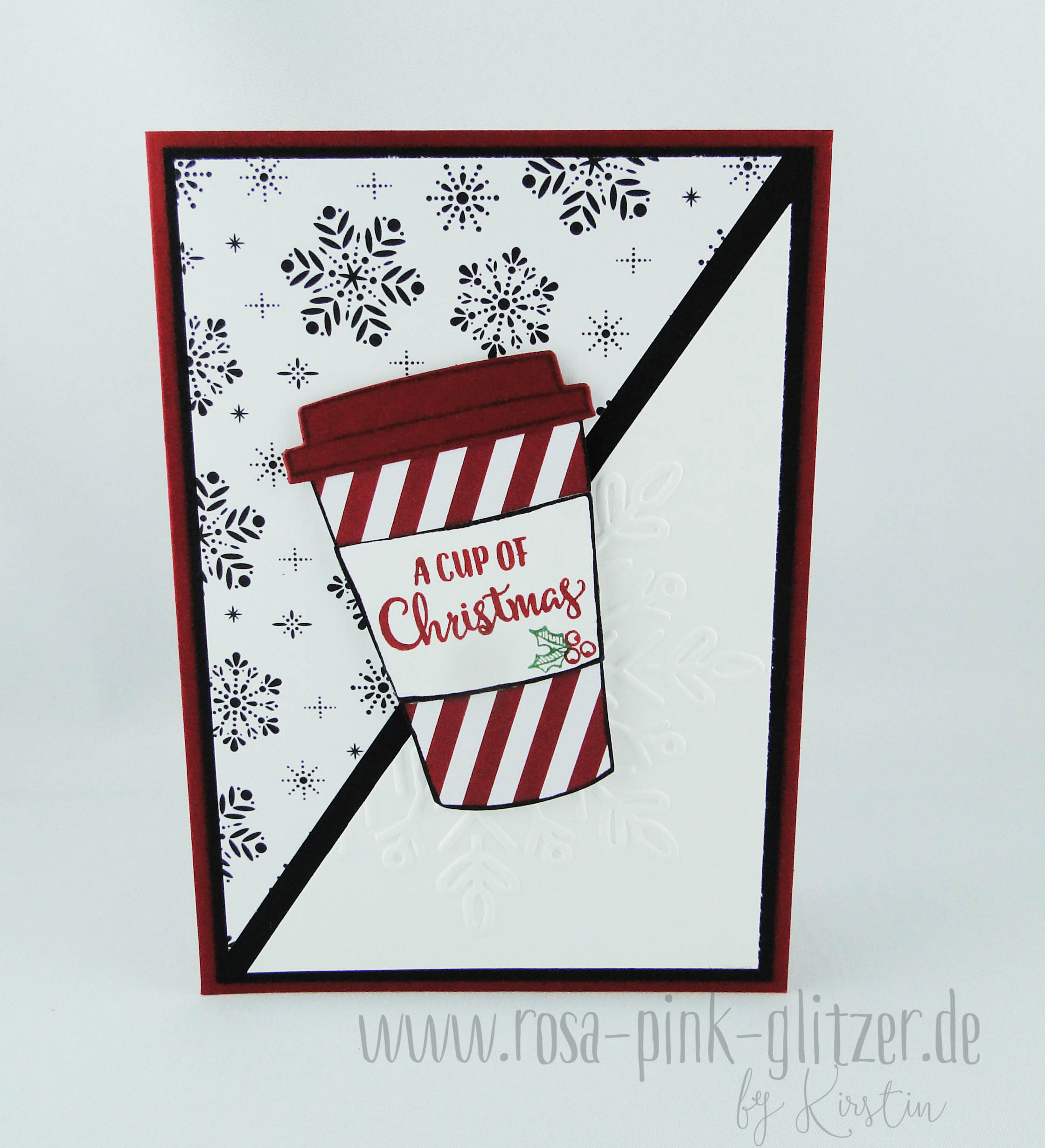 Leider sieht man auf den Bildern diesen wunderschönen Schneeflocken-Prägefolder nur bei ganz genauem Hinsehen. Der ist so toll sag ich Euch! Das Designerpapier mit den hübschen Schneeflocken heißt „Frohes Fest“.