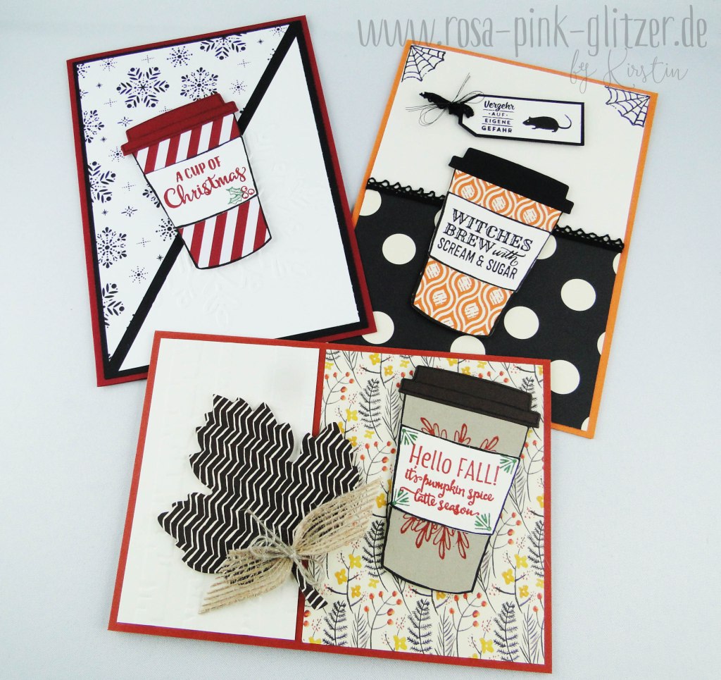 Ich hab ein Kartenset für Euch vorbereitet mit dem Stampin up Kartenset „Merry Cafe“. Ich hatte ja das Stempelset „Kaffee, ole!“ für die Gestaltung der Schauwände bei Stampin up OnStage bekommen und irgendwie hab ich mich darin verguckt, da war jetzt das Weihnachtsset dazu auch quasi Pflicht.