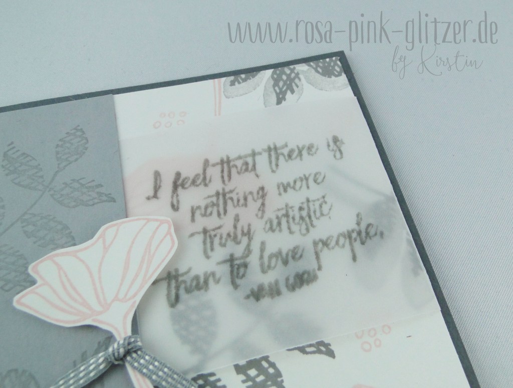 Toll mit dem Transparentpapier, oder? Ich hab für die Schauwände eine Magic Card mit Klarsichtfolie gebastelt. Die bekommt Ihr natürlich auch bald zu sehen 😉 Aber für die Blumen finde ich dieses matte, zart durchscheinende einfach wunderschön.