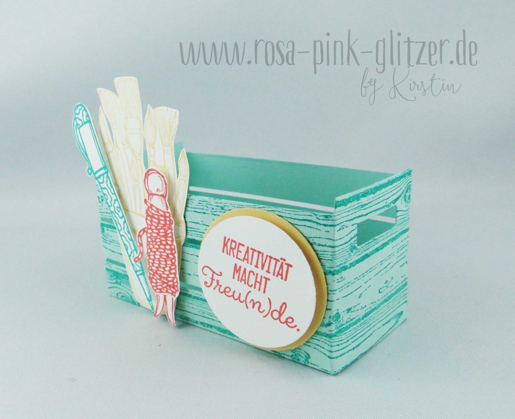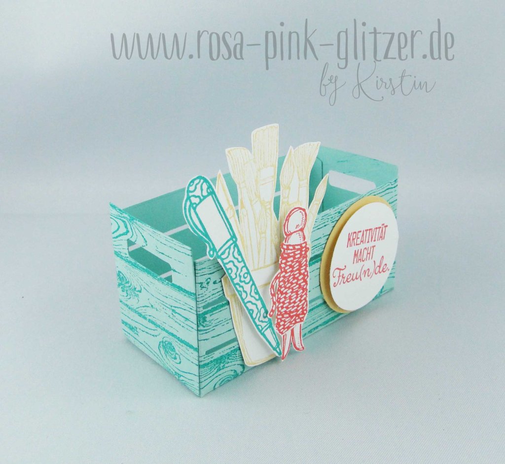 Meine Zusatzfarbe ist Aquamarin. Ich hatte da nämlich von meiner letzten Challenge-Karte noch dieses wunderschöne Blümchen-Papier hier liegen. Und irgendwie gefiel mir das sehr gut in Kombination zu einem neuen Designerpapier aus dem neuen Stampin up Frühjahrs-Sommer-Katalog.