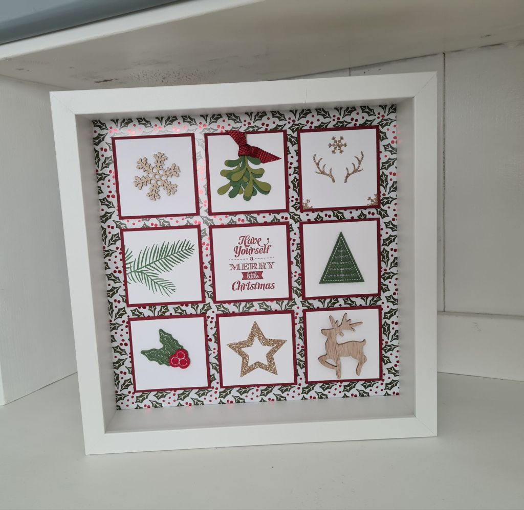 Hallo ihr Lieben, heute wird es weihnachtlich. Ich zeige Euch einen Rahmen vom schwedischenMöbelhaus, den ich in typischen Weihnachtsfarben gestaltet habe.