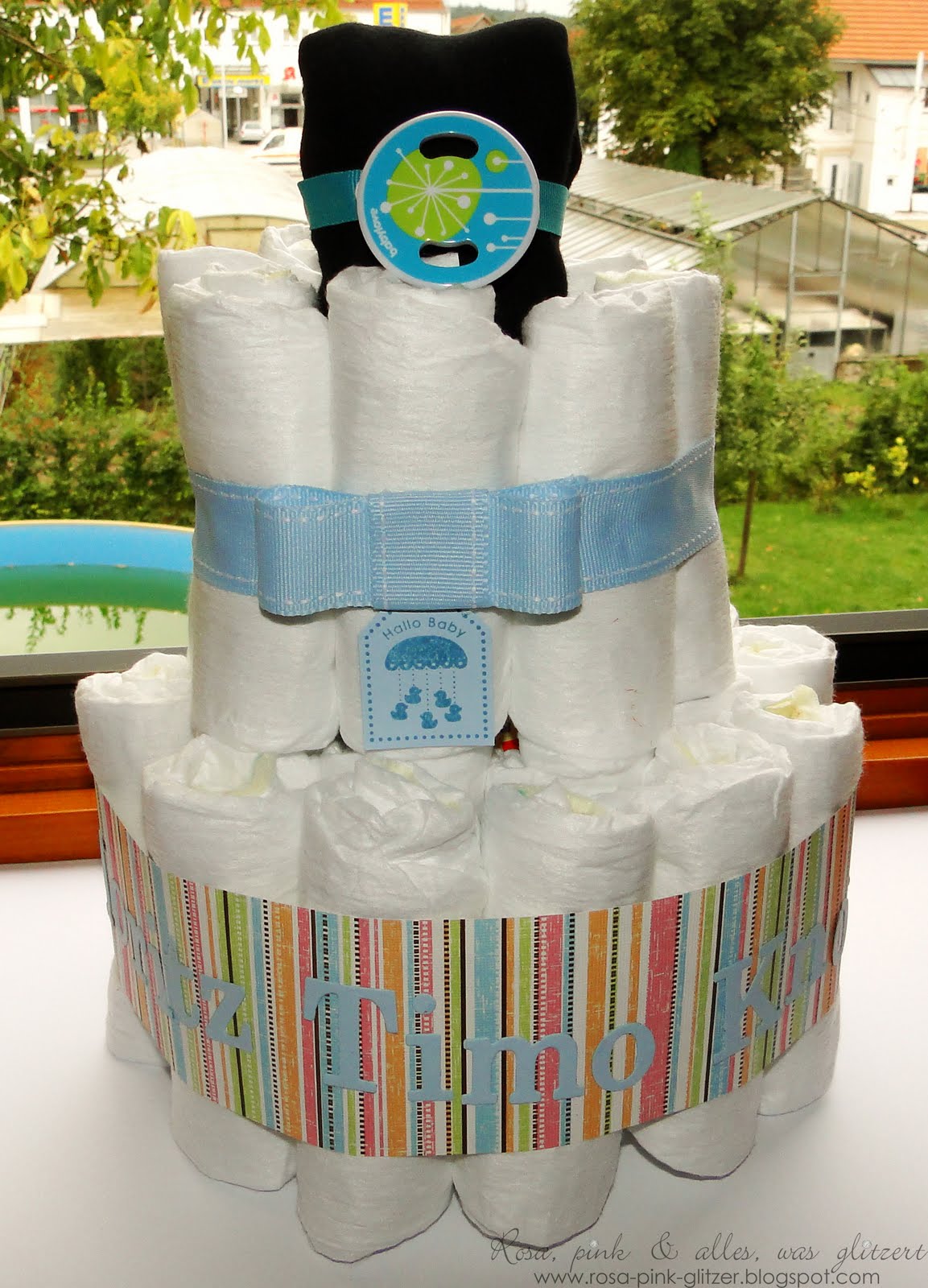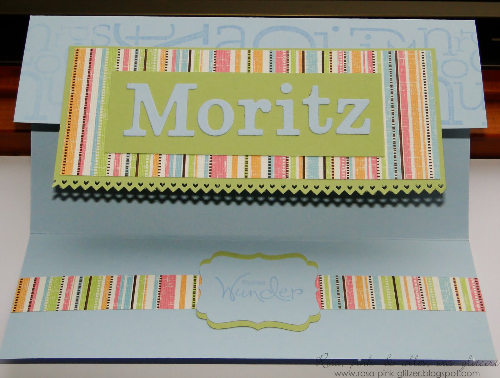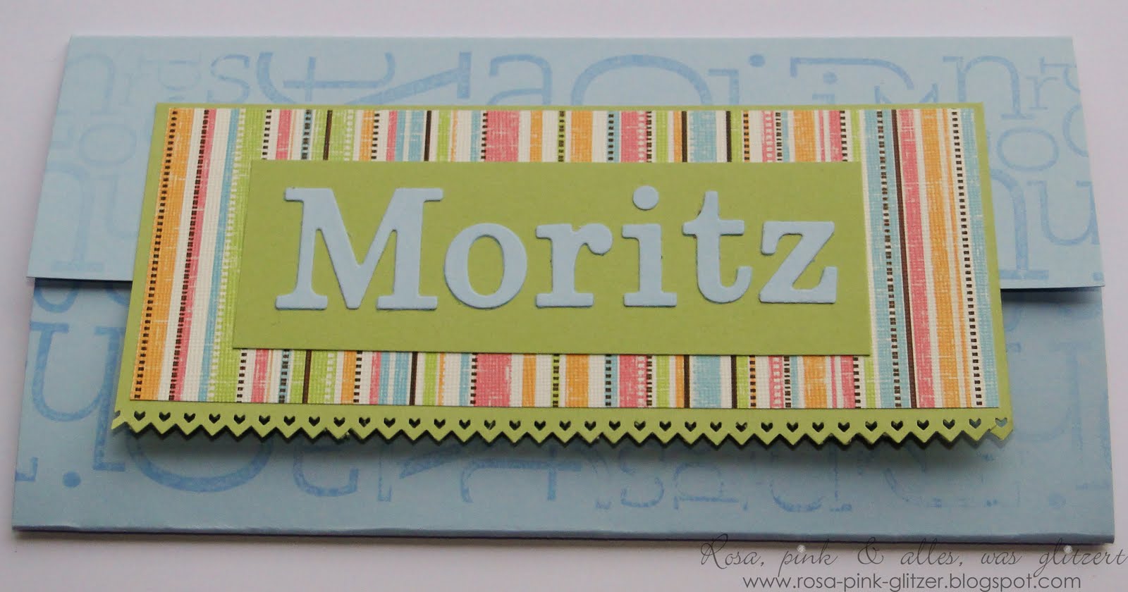 Vor drei Wochen wurde der kleine Moritz Timo geboren. So ein süßer kleiner Schatz! Diese Karte mit passendem Geschenk sollte ihn auf de Welt willkommen heißen.