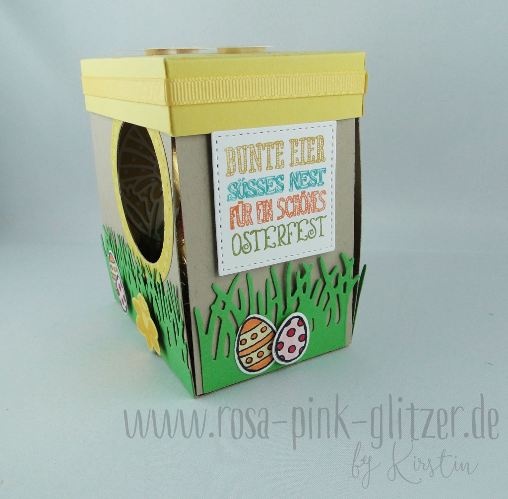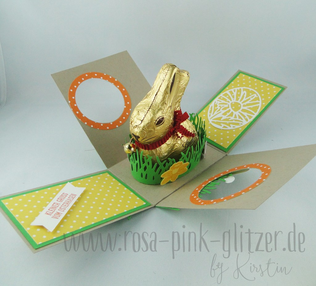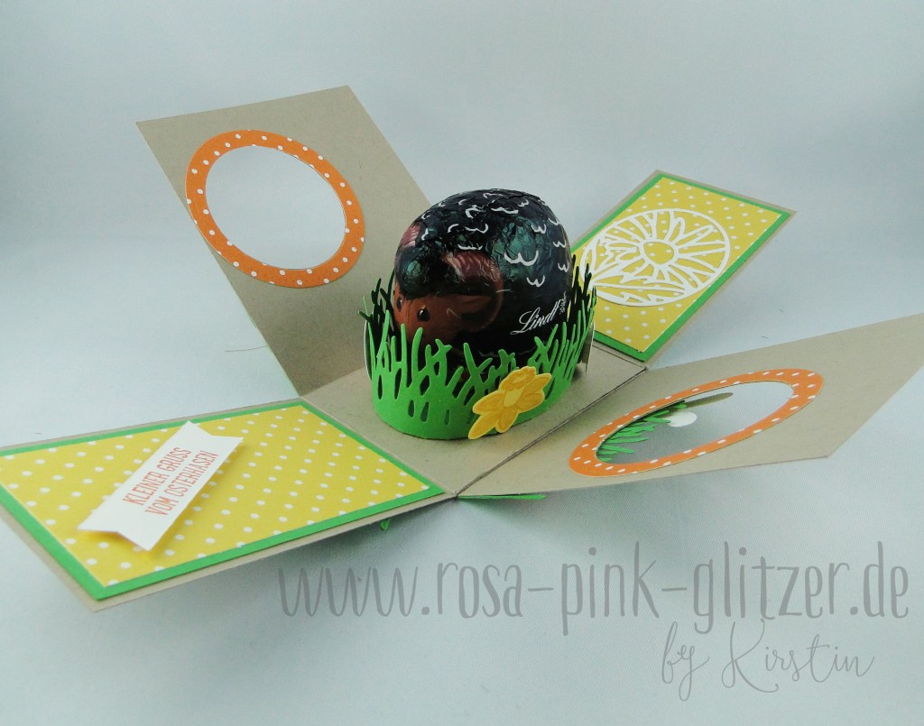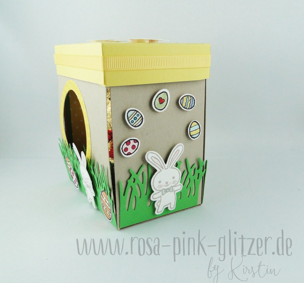 Willkommen zur heutigen Eiersuche bei mir. Ich zeige Euch heute eine Explosion-Box mit Hasi. Na, seht Ihr ihn?