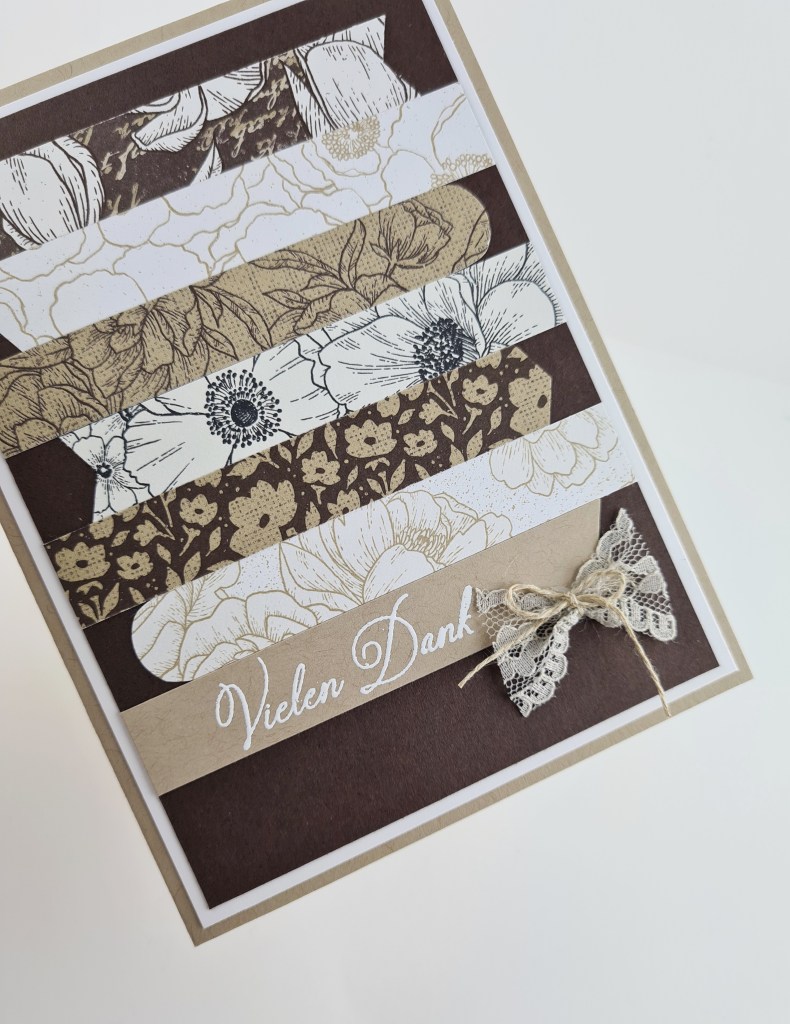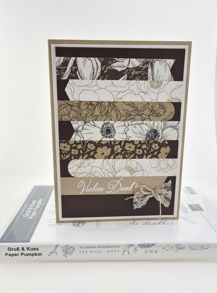 Gestempelt wurde nicht viel, aber das schön geschwungenen Danke stammt aus dem Paper Pumkin Set „Gruß & Kuss“.