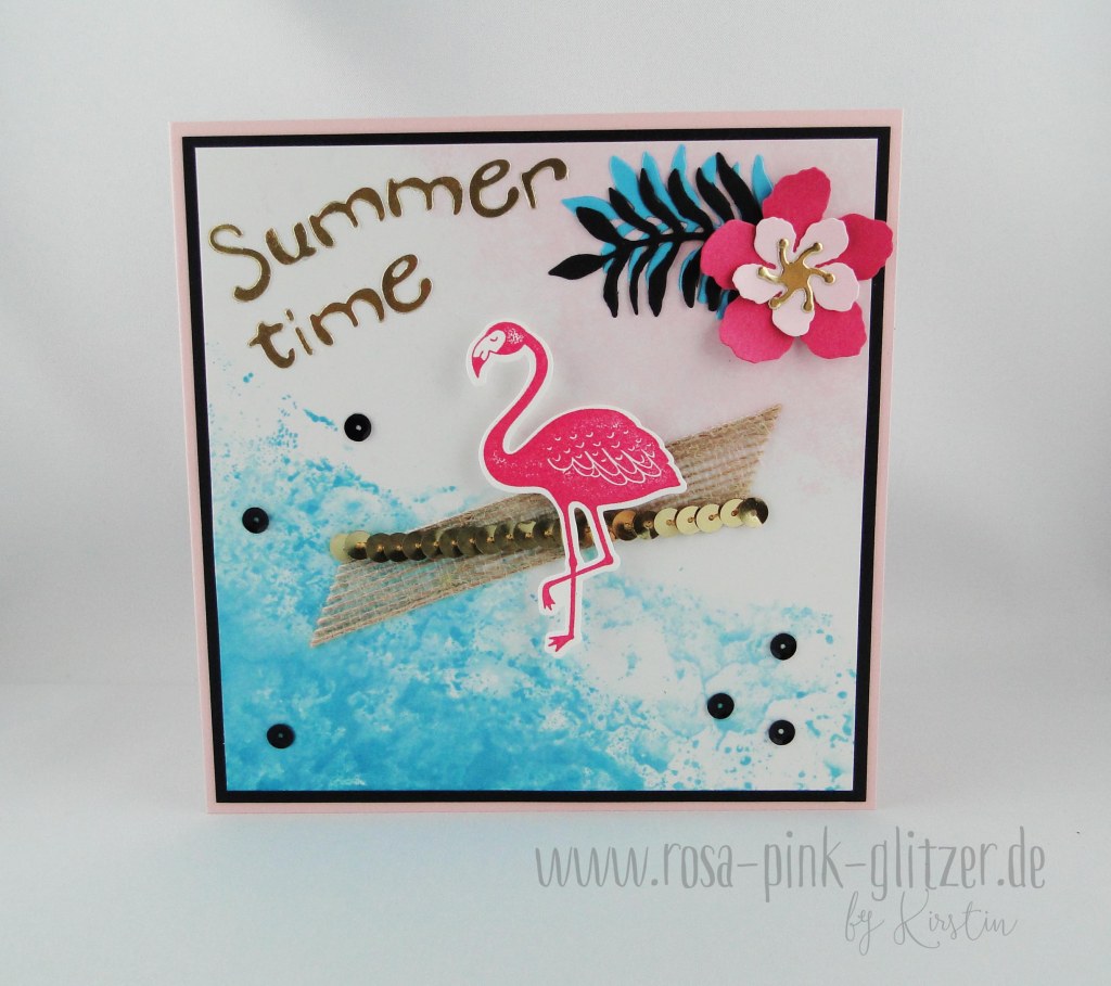 Heute zeig ich Euch eine Sommerkarte mit einem Flamingo auf meinem Blog. Gleich gehts bei uns ab zum Weiher, denn wir Glückskinder in Bayern haben ja heute einen Feiertag. Als ob das nicht allein schon toll wäre ist das Wetter auch noch traumhaft schön. So stell ich mir das Leben vor 😉