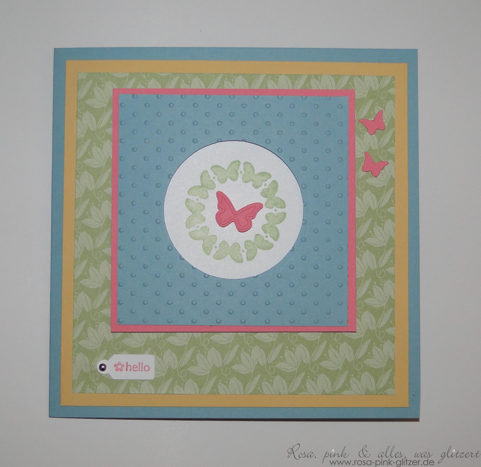 I created a card in soft colors with Precious Butterflies. Isn’t this set wonderful? It was a present from my upline Marion and I really like it so much.