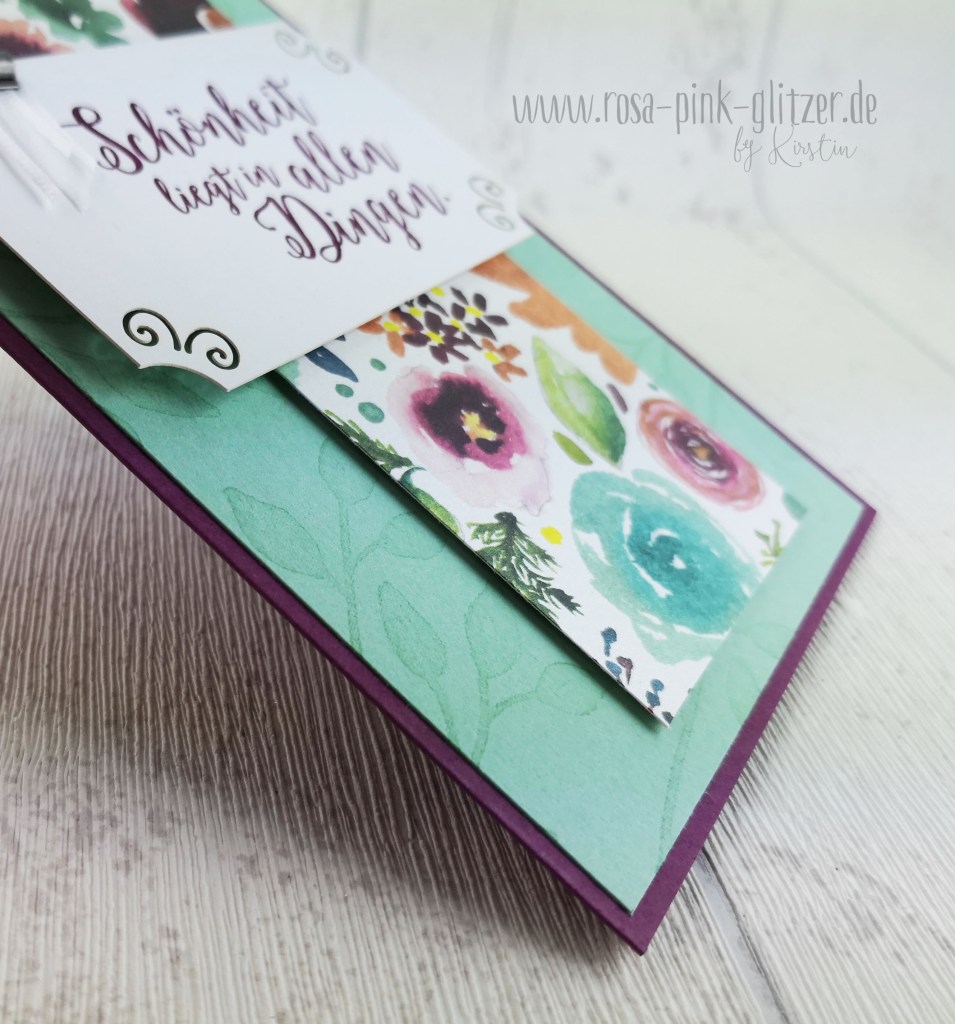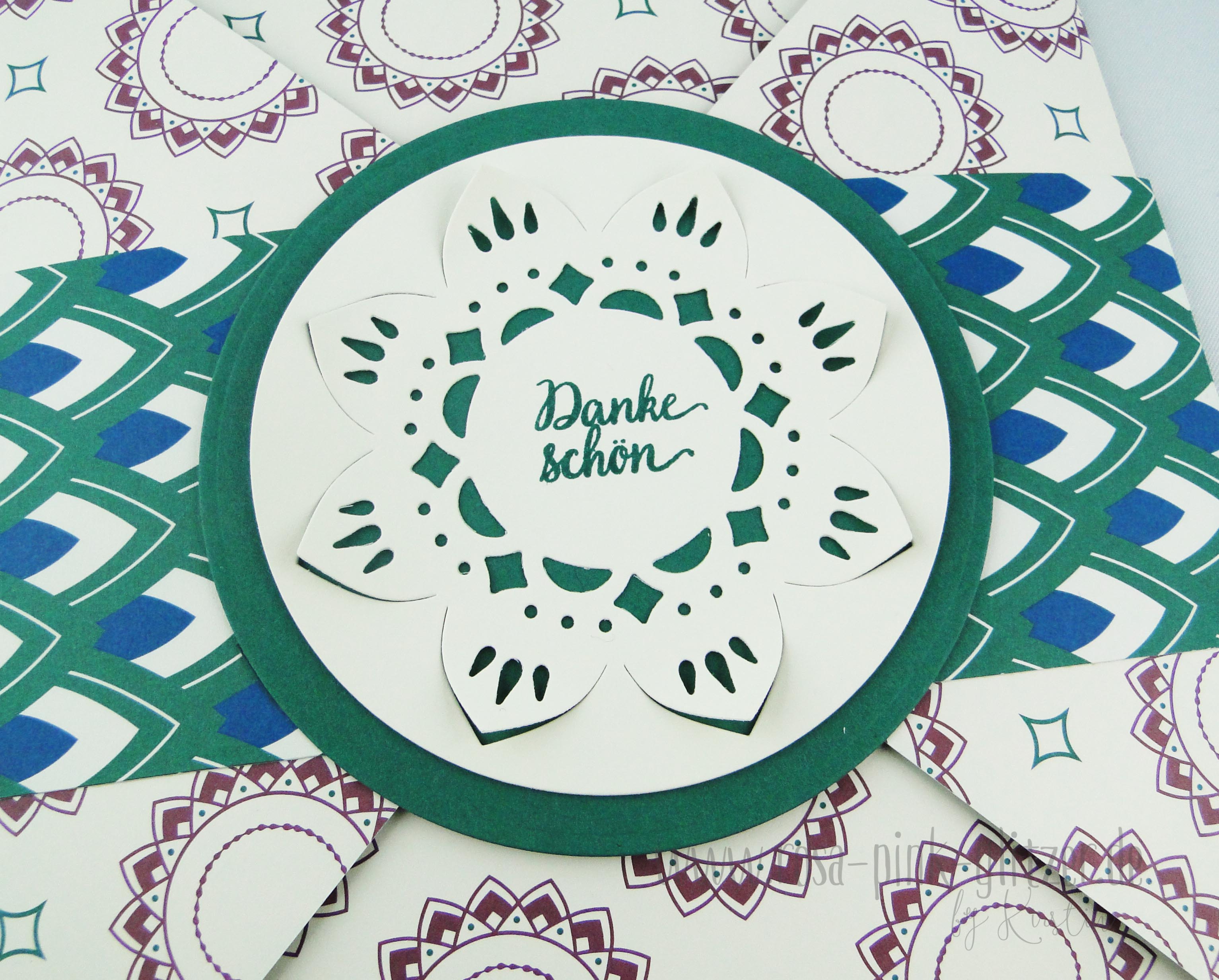 Der Spruch stammt aus dem Stampin up Stempelset „Schönheit des Orients“ und wurde mit den gestickten Framelits in Szene gesetzt.