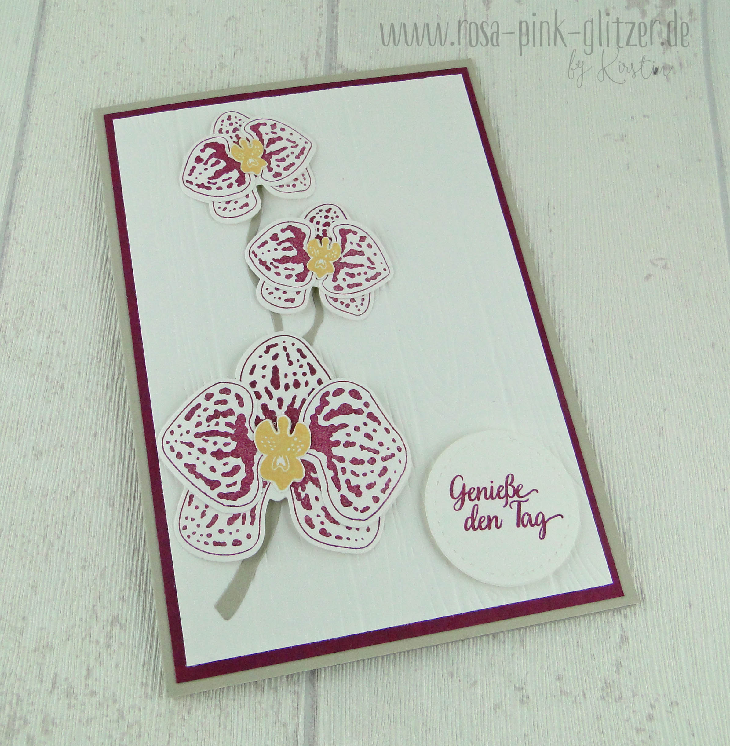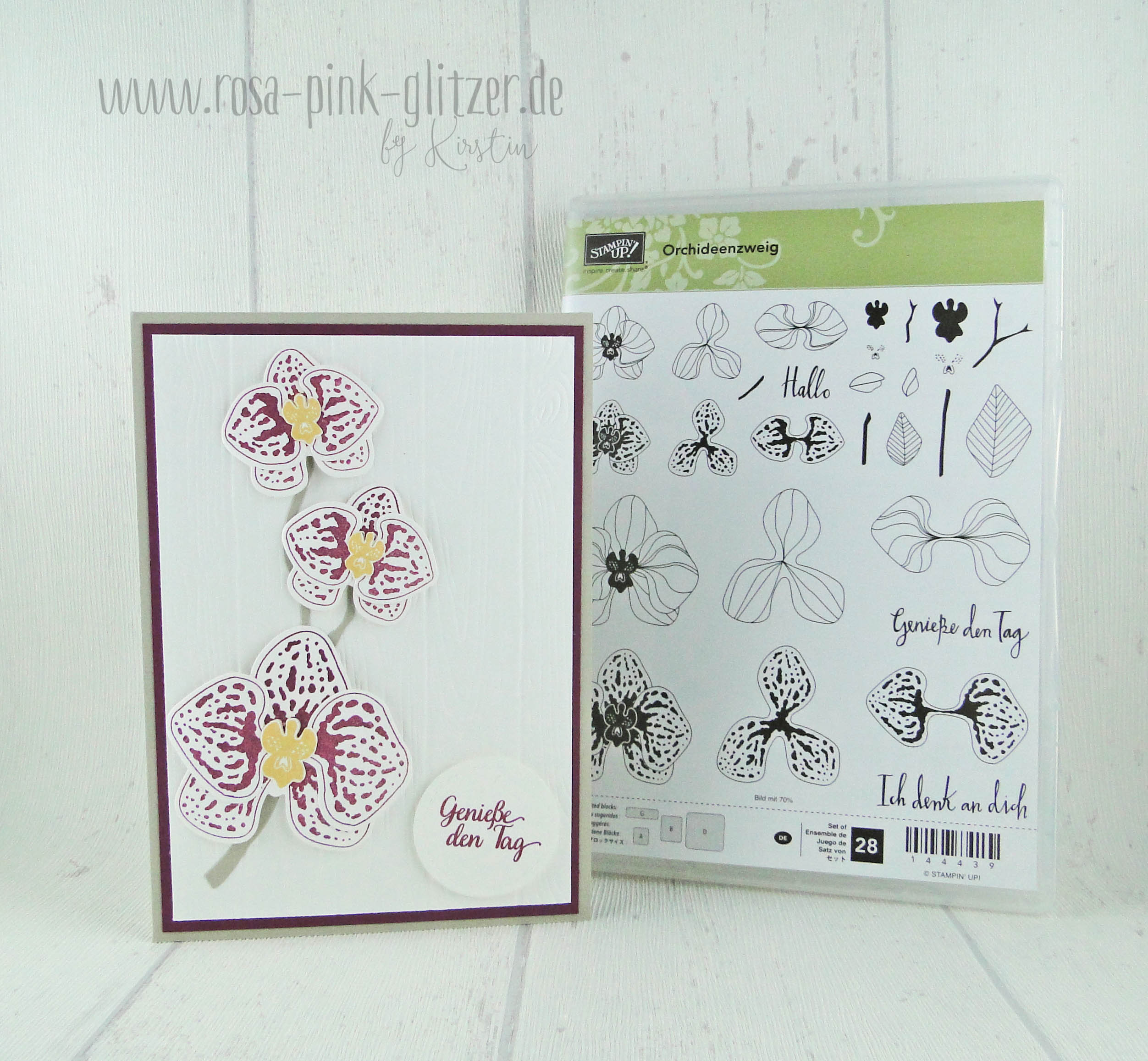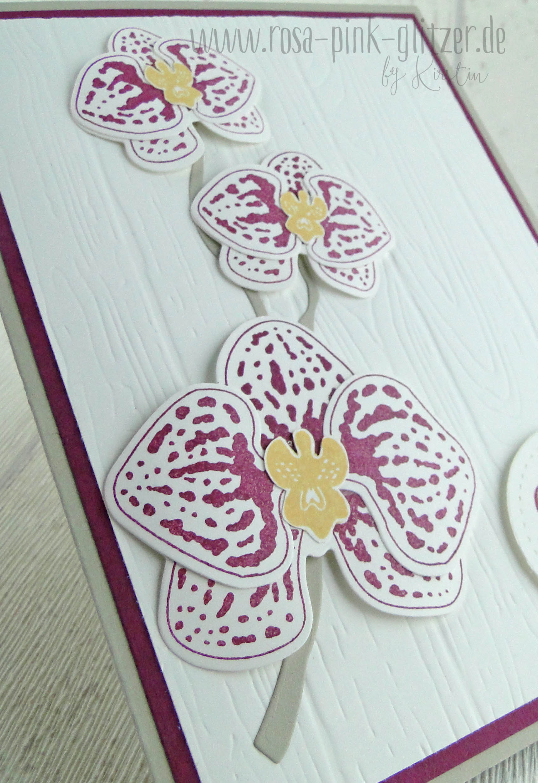 Ich finde die Farbkombi wunderschön, überlegen musste ich aber trotzdem. Und dann war es auf einfach ganz klar: Orchideen! Das Set hab ich eh noch kaum benutzt und das wollte unbedingt mal zum Einsatz kommen.