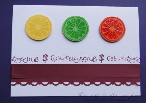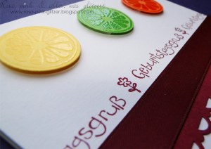 Cardstock: Flüsterweiß, Himbeerrot, Osterglocke, Mandarinorange (das grün ist leider eine alte SU-Farbe die ich nicht habe, da hab ich improvisiert mit Tonpapier)