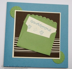 Die Farben von ColourQ haben mir diesmal sehr gut gefallen. Leider bin ich die ganze Woche irgendwie kaum zum basteln gekommen. Aber heute, kurz vor knapp, hat es doch geklappt und ich hab eine Karte gewerkelt. Und als sie fertig war, hab ich mir mal die anderen Werke so angesehen – und bin fast hintenüber gekippt. Da gab es doch wirklich eine Karte, die ein wenig so aussah wie meine. Und zwar die von Lindsay. Jetzt denk wahrscheinlich jeder, ich hab die Idee geklaut. Aber ehrlich, ich hab erst gebastelt und dann geguckt. Wenn es nämlich nicht so wäre, hätte ich auch kein Problem damit, es zuzugeben 🙂