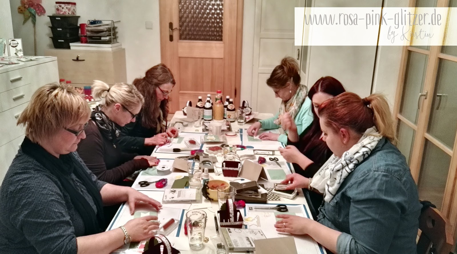 Meine Gäste haben fleißig gewerkelt und waren ganz erstaunt, dass diese Double-Slider-Card dann doch so einfach geht. Und eine kompetente Workshop-Leitung – quasi meine Vertretung – gab es zwischendurch auch 😉