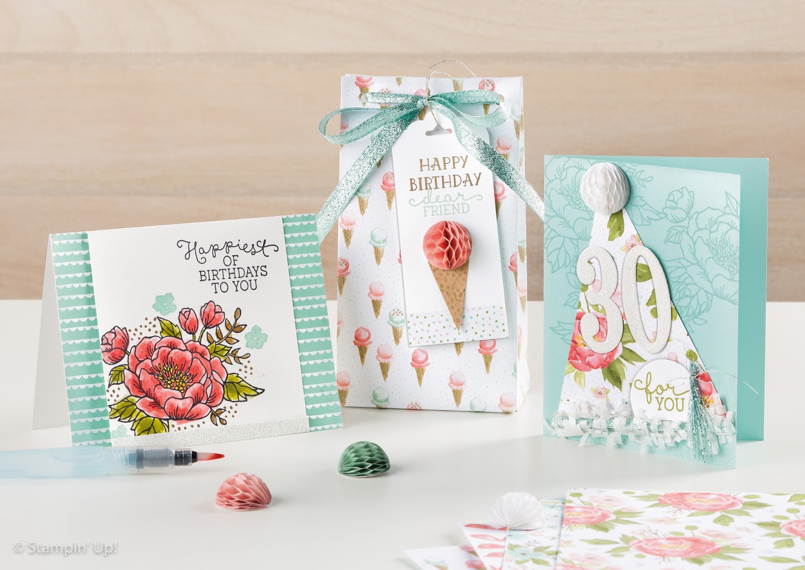 Cardstock: Flüsterweiß, Himmelblau, Zartrosa