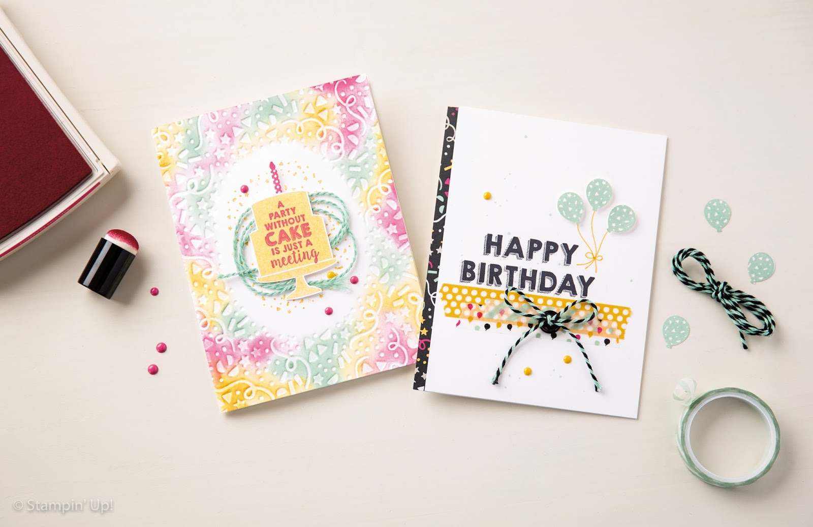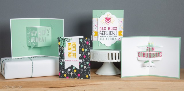 Der Luftballon stammt aus dem Stampin‘ Up! Stempelset „Balloon Builders“, das Schleifchen aus den Thinlits Leckereien-Tüte, natürlich ebenfalls von Stampin‘ Up!.