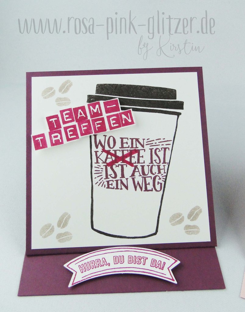 Am letzten Wochenende war es wieder soweit: Unser alljährliches Stampin up Teamtreffen, das Marion immer organisiert, fand statt. Diesmal nicht in München, sondern in der Kaffeerösterei Dinzler am Irschenberg. Wunderschöne Location und toller Kaffee 😉 Letzteres war dann auch das Thema fürs Teamtreffen, wie Ihr an den Willkommens-Goodies, die ich Euch in einem extra Beitrag zeigen werde, sehen könnt.