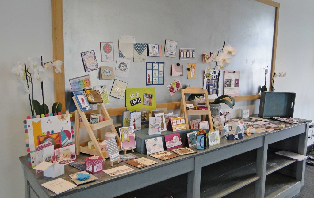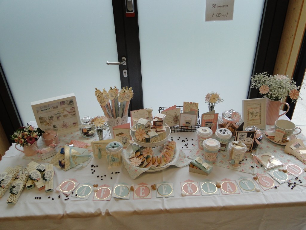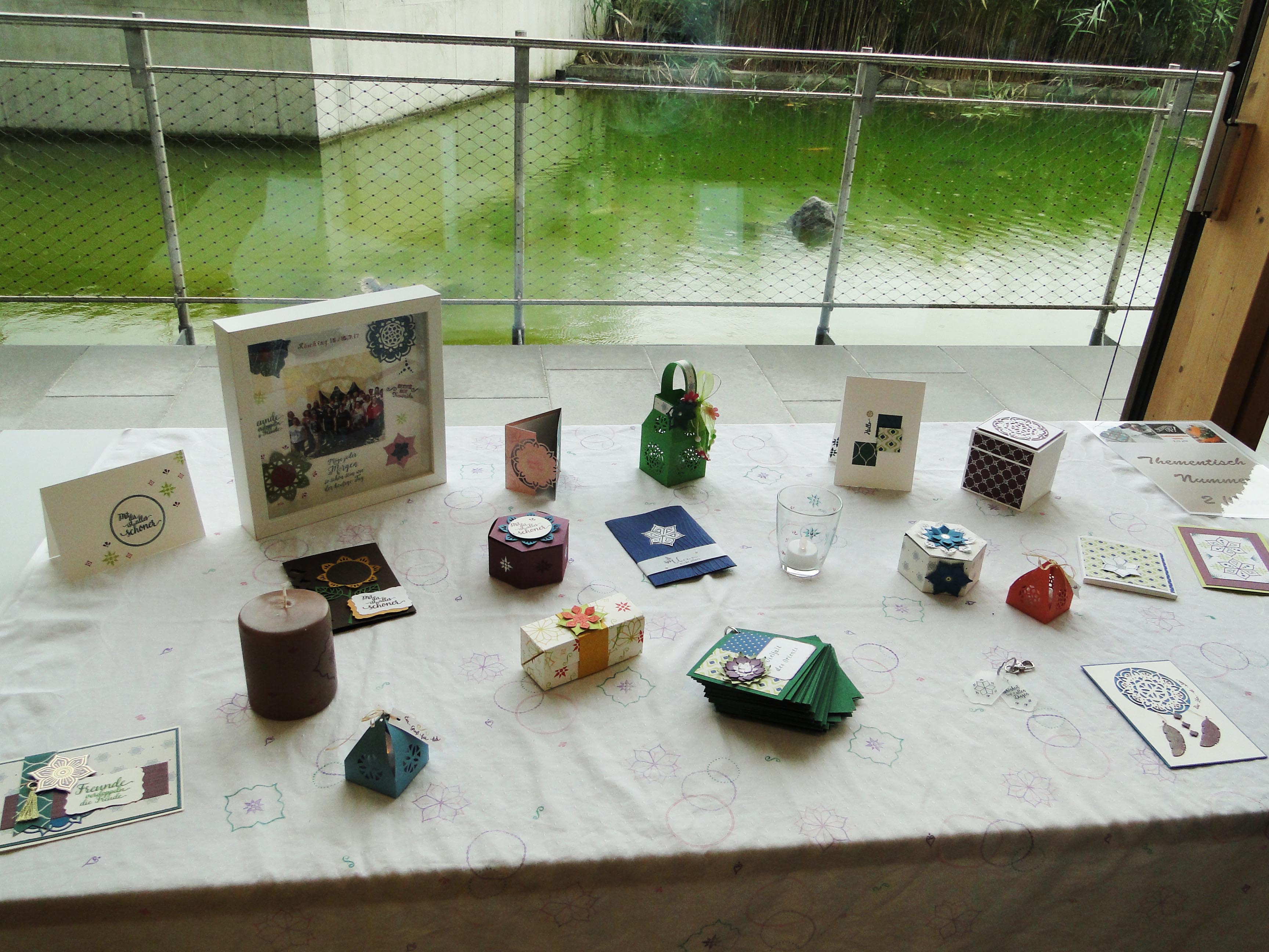 Ein weiteres Highlight: Die Schauwand. Jetzt mal echt, haben wir toll gemacht, oder? Ich finde, sie kann locker mit den Schauwänden bei den Stampin up Veranstaltungen mithalten.