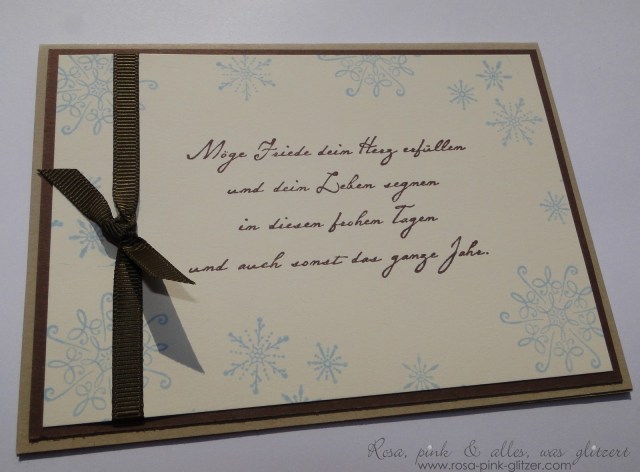 Der Spruch stammt eigentlich aus einem alten Weihnachtsset. Ich hab nur die zwei letzten Zeilen weggelassen, so schien er mir dann sehr passend.