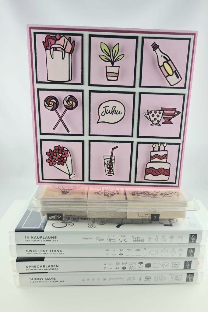 Ich hab mich voll mit dem Stempelset In Kauflaune ausgetobt und mit passenden aus meinem Fundus ergänzt. Gar nicht so einfach, sollte ja der gleiche Stil sein.