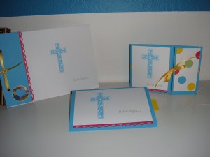 Guten Morgen an diesem sonnigen Montag, ich hoffe, Ihr hattet ein schönes Wochenende? Heute möchte ich Euch ein Taufset zeigen, dass ich zum großen Tag der kleinen Johanna gebastelt habe.