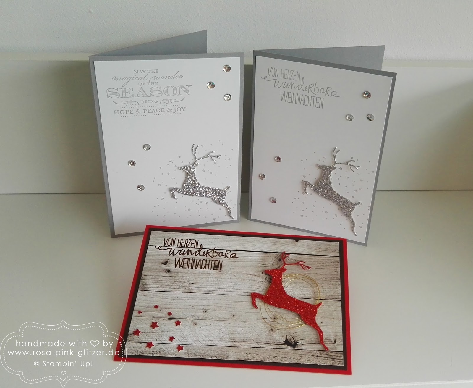 Jetzt nur noch einmal schlafen, dann ist es soweit: Weihnachten! Seid Ihr in Weihnachtsstimung? Bei mir kommt sie jetzt doch langsam auf, trotz der frühlingshaften Temperaturen. Ich weiß noch, dass wir beim Workshop von Anne noch gewitzelt hatten, ob „Verschneite Grüße“ vielleicht ein wenig optimistisch wäre. Nun ja, doch, irgendwie schon. Aber was solls! Vom Wetter sollte man sich nichts vermiesen lassen. Und von Sonne ja schon gar nicht 😉