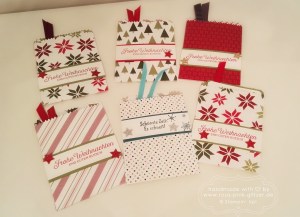 Seit letztem Jahr veranstalte ich kurz vor Weihnachten einen Last-Minute-Weihnachtskarten-Workshop, bei dem einfach „nur“ 6 Weihnachtskarten gebastelt werden. Ich finde das immer einen tollen Workshop, weil man schon in Weihnachtsstimmung ist und es einfach soviel Spaß macht, nochmal aus dem vollen Weihnachtssachen-Schatz zu schöpfen.