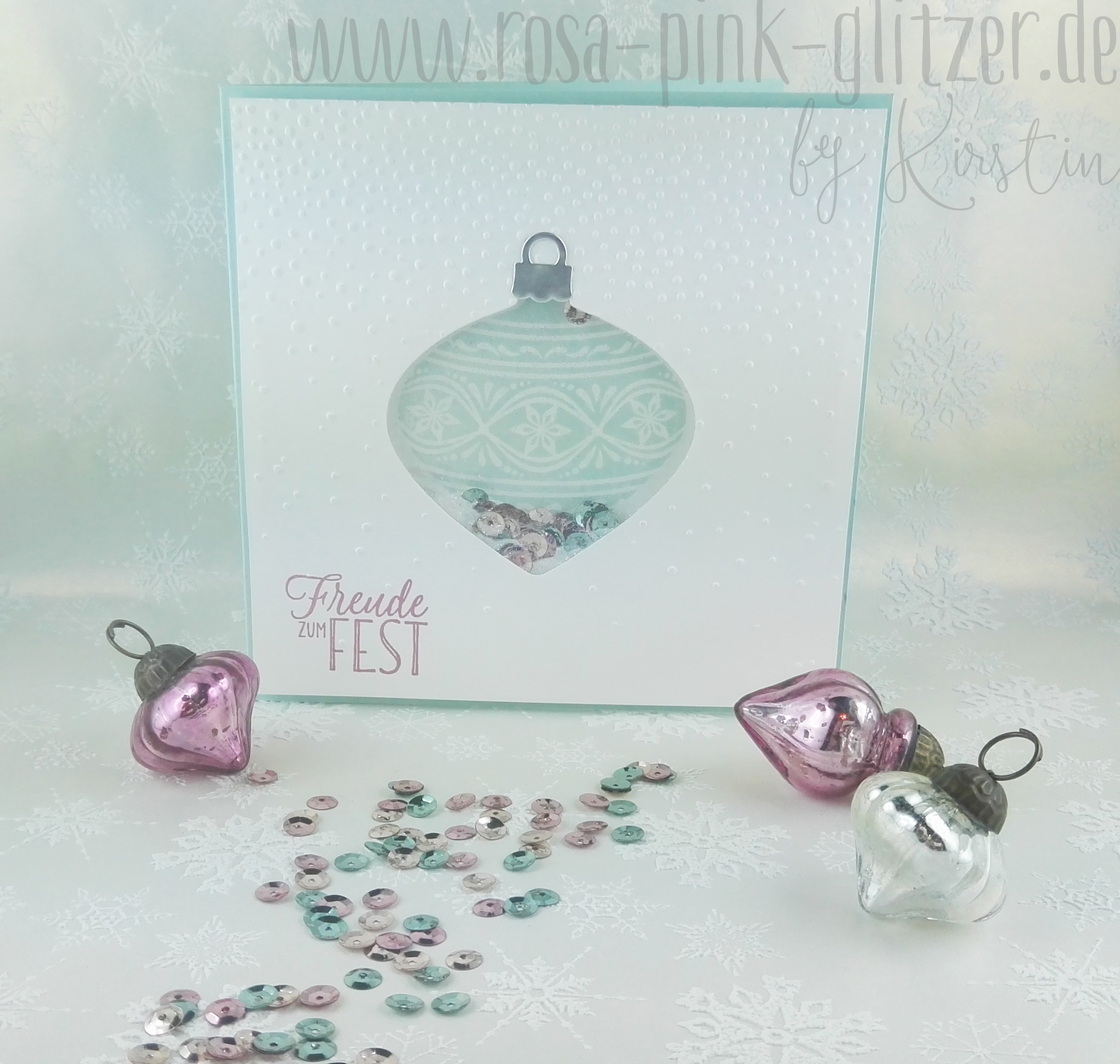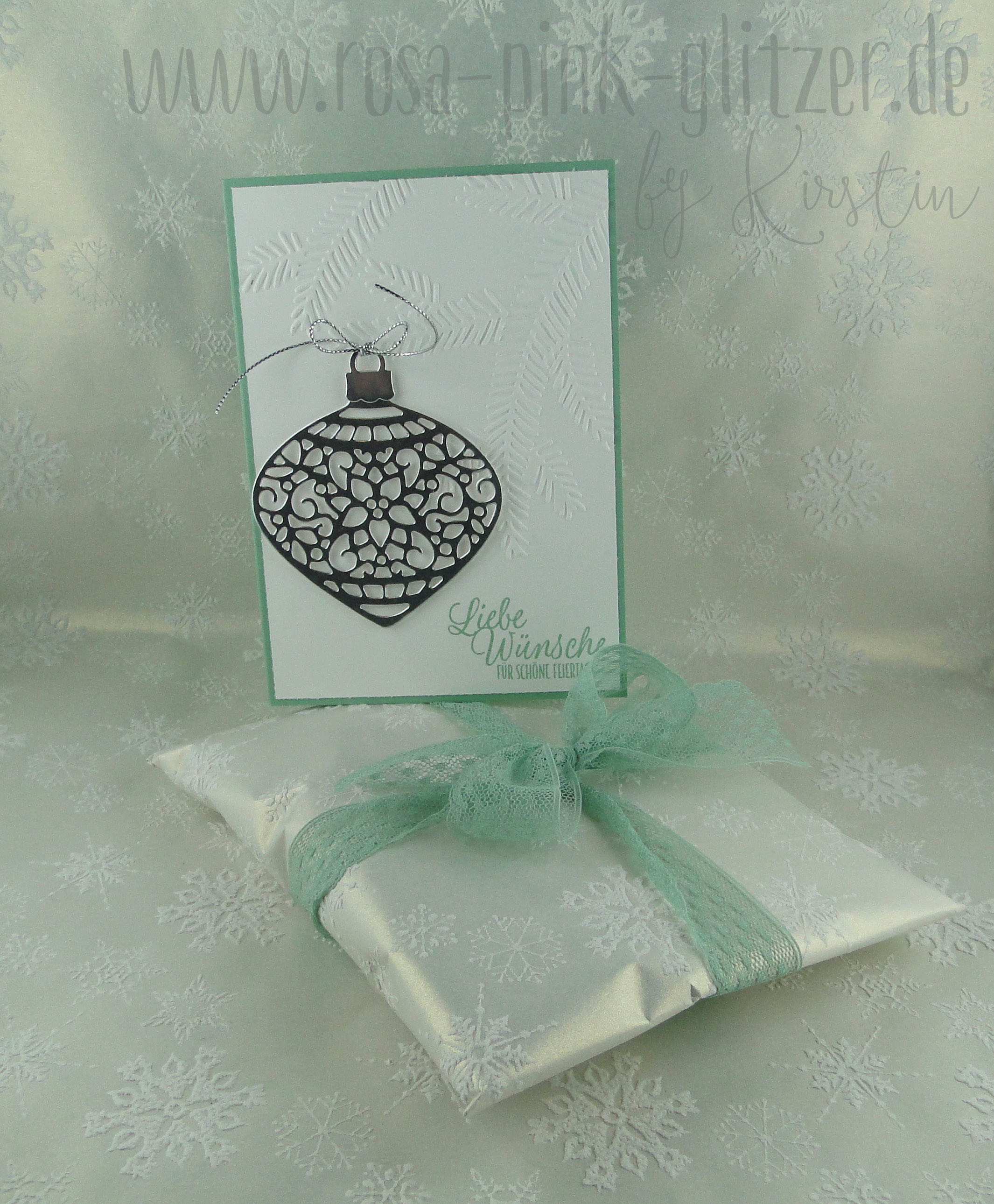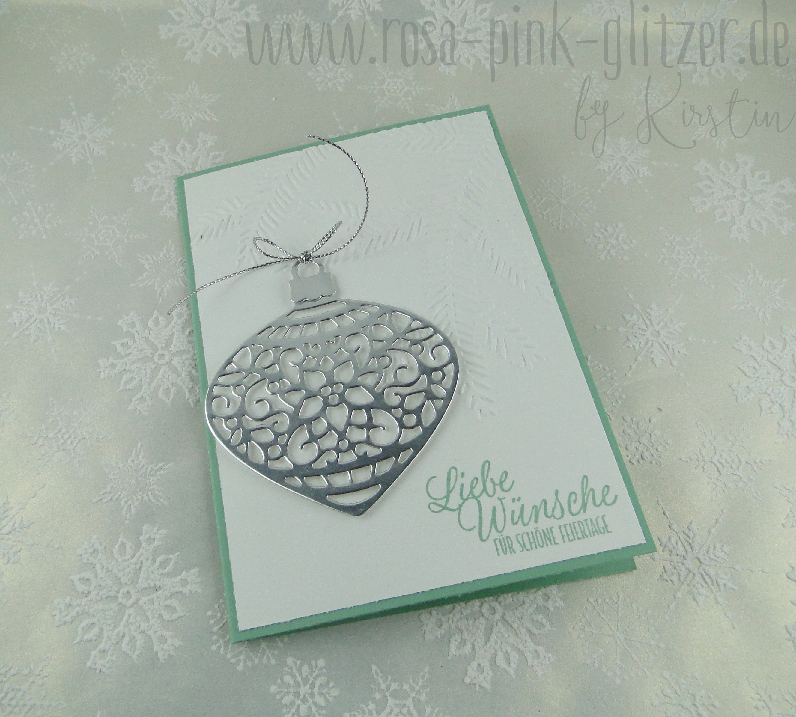 Bei dieser Karte kam quasi meine Lieblingsfarbe zum Einsatz, kombiniert mit Saharasand und gold. Diese Kugeln aus dem Stampin Up Stempelset „Zauberhafte Zierde“ sind ein Traum, oder? Bleiben uns auch erhalten 😉